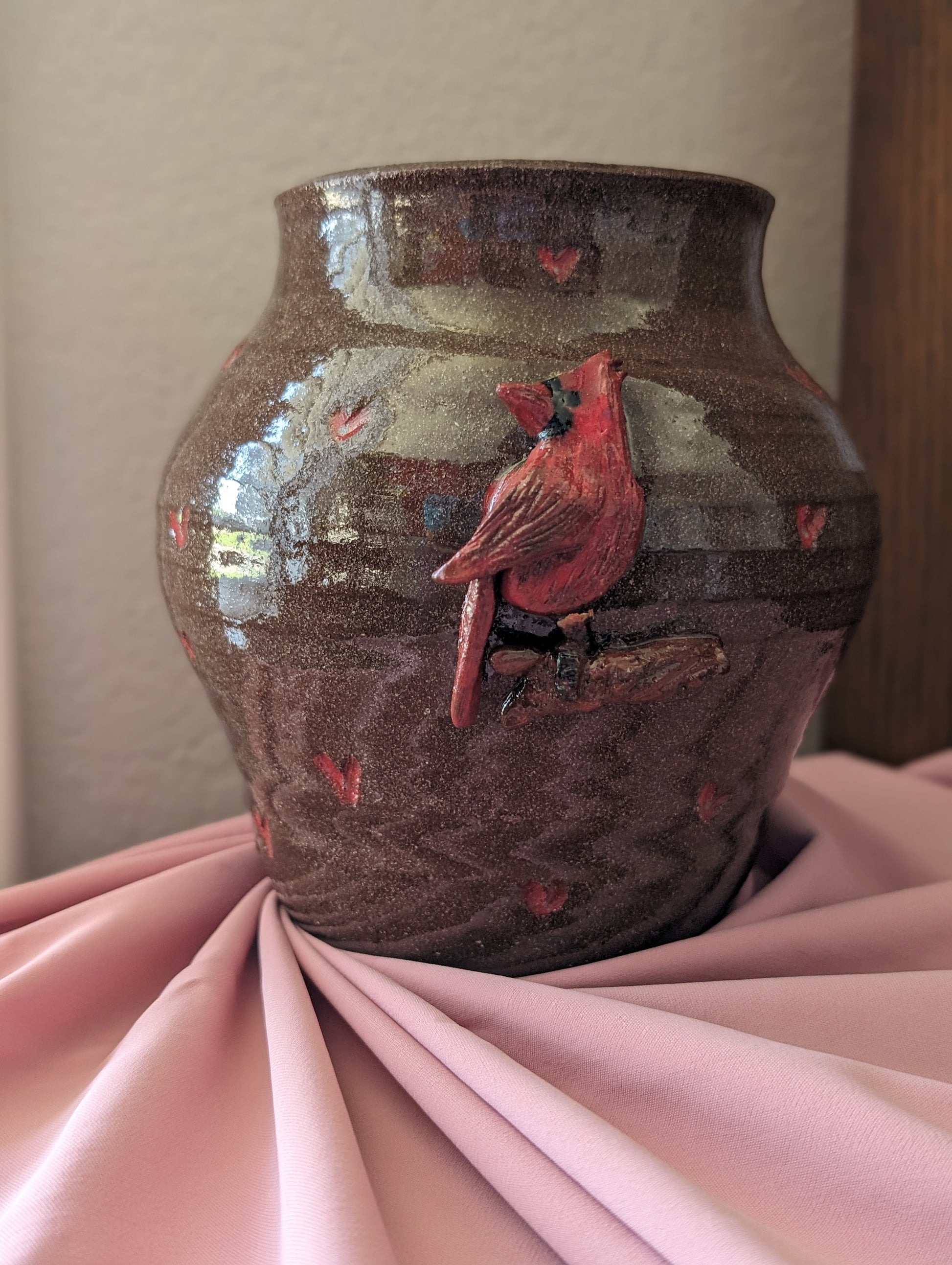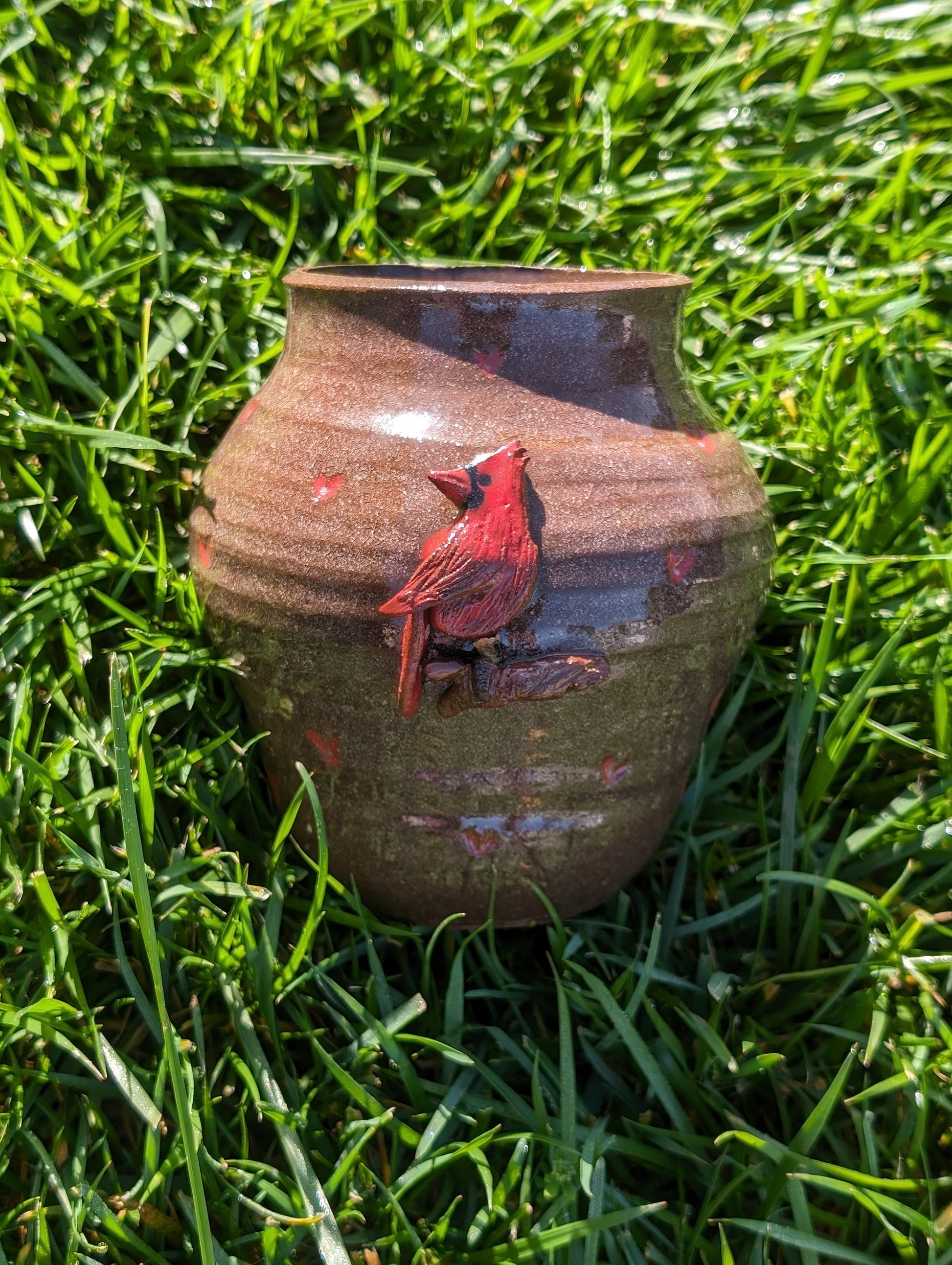 Enchanted Heart: Handcrafted Cardinal Vase Captures Spring's Majesty