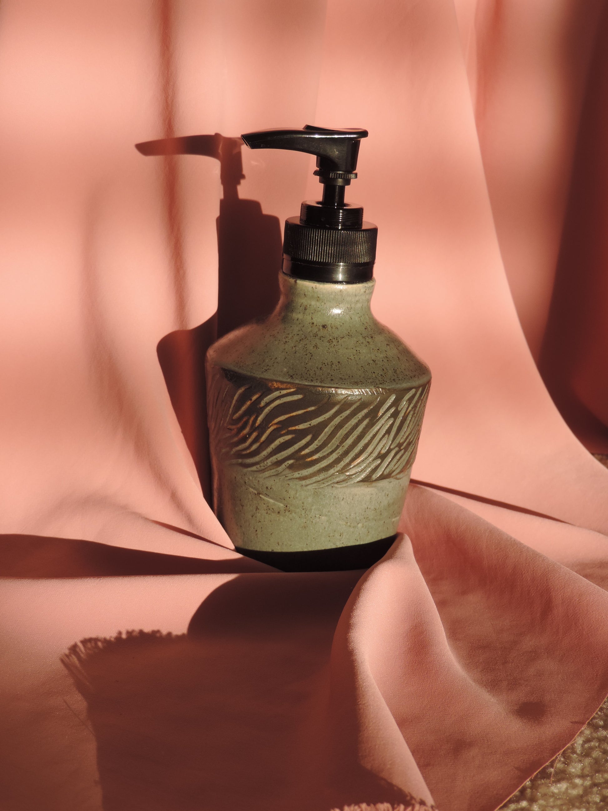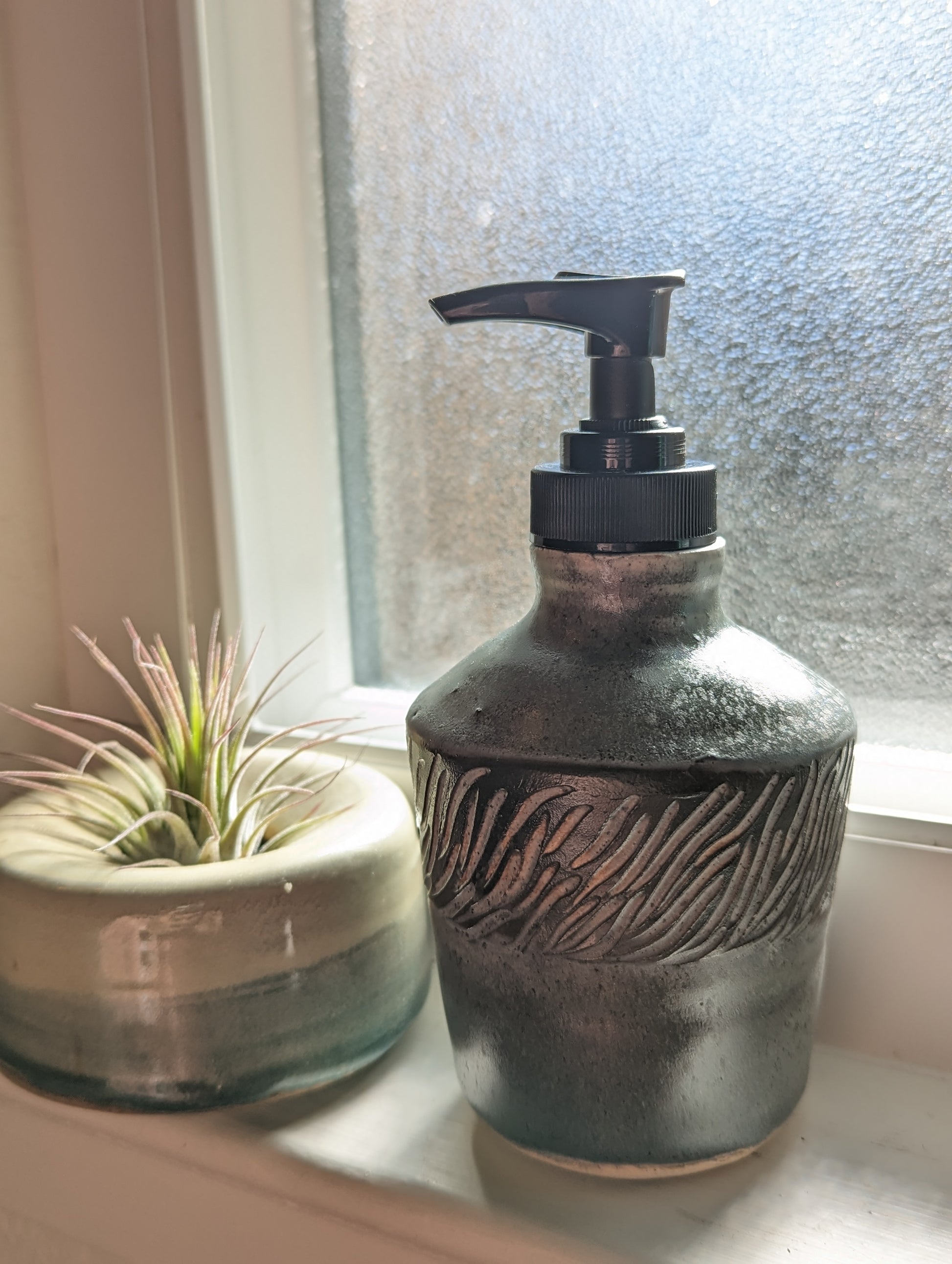 The combination of textures and colors make this soap dispenser a perfect addition to any wash area décor.